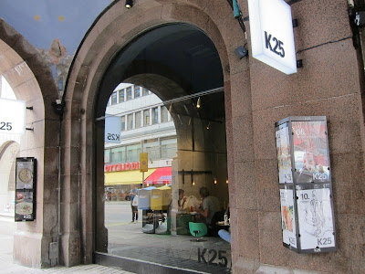 そんな中心部に今年の4月にオープンしたフードコートがK25です。映画『魔女の宅急便』のコリコの町の中で描かれている橋のモデルになったとも言われるKungsgatan(クングスガータン)に架かっている橋の下にK25はあります。